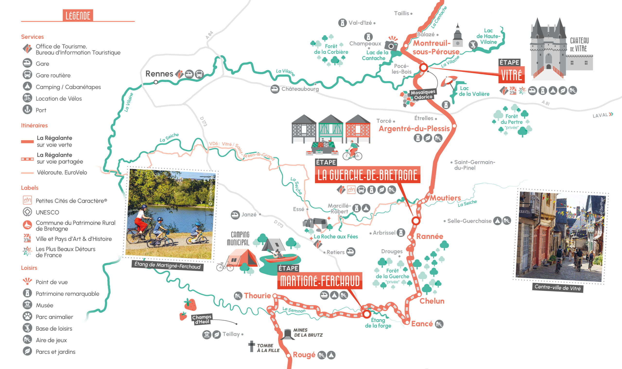 Ille & Vilaine Tourisme, en sa qualité de coordinateur du projet, a choisi de faire appel à notre expertise pour la conception de la carte d’itinérance cyclable illustrée. Cet outil promotionnel, le premier de la stratégie de communication de La Régalante, devait impérativement :