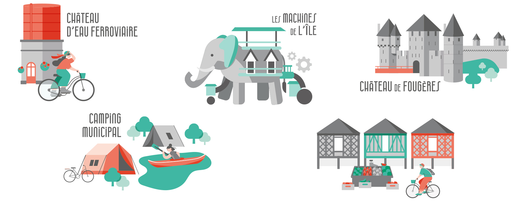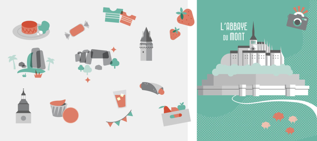 Pour conférer à la carte un aspect ludique et engageant, nous avons crée des illustrations flat et des pictogrammes personnalisés et tendances. Ces éléments graphiques ont été faits sur mesure pour représenter les points d’intérêt et les services clés de l’itinéraire.
