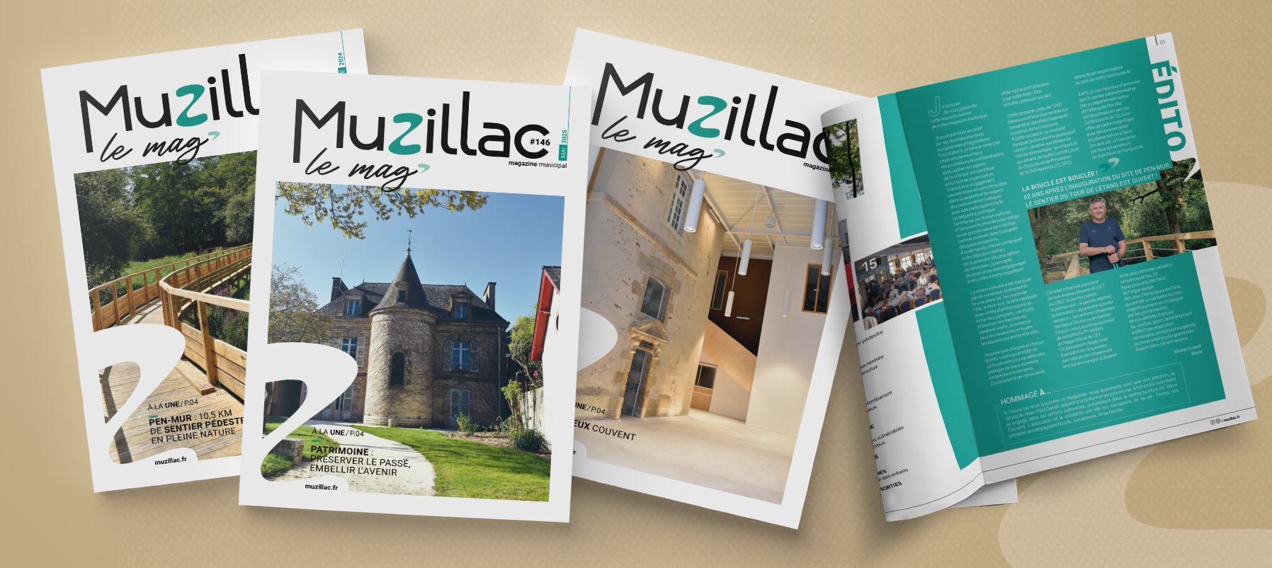 La ville de Muzillac, commune morbihanaise de plus de 5 000 habitants, adopte en janvier 2023 une nouvelle identité visuelle. Sobre et épurée, elle reflète l’attachement de la municipalité et de ses citoyens à la sauvegarde et à la valorisation de leur patrimoine naturel. Après l’officialisation du nouveau logo de la ville de Muzillac ainsi que la mise à jour de leur site internet, c’est au tour du magazine municipal, principal vecteur de communication de la commune, de faire peau neuve.